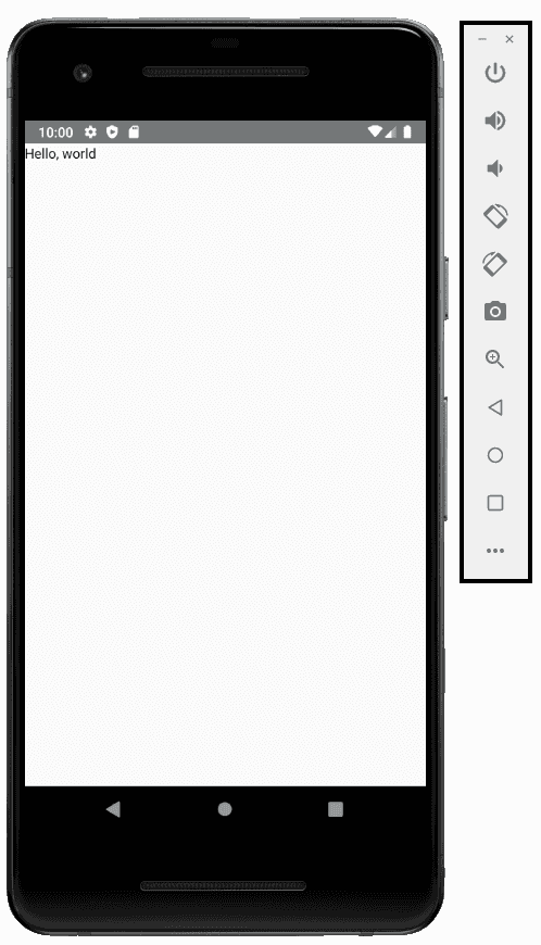 export default App;This is pretty standard React code, save for the Text component. As expected, we can't just render HTML tags; instead, we need to render based on the list of available components. In our example, the Text component is one of the most basic ones and has the sole purpose of displaying text, similar to a <p> tag. If you take a look at the emulator, you will see the result: